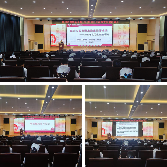 自5月5日以来,学院邀请行业企业专家通过线上和线下相结合的方式,分阶段分层次举行实习生动员暨岗前培训。各系部结合实习管理制度开展了岗前培训系列讲座,并根据专业特点分别邀请了学院客座教授、成都西区医院护理部主任兼院长助理王红梅主任护师、成都市龙泉驿区第一人民医院康复医学科教学总带教马得旅康复师、国药集团西南医药有限公司人力资源部杨白皖经理、成都市龙泉驿区妇幼保健院检验科王维主任分别从如何成为一名优秀的护士、实习意义、实习目标、实习计划、实习注意事项、职场思想修养等方面进行专题讲座和精彩分享。