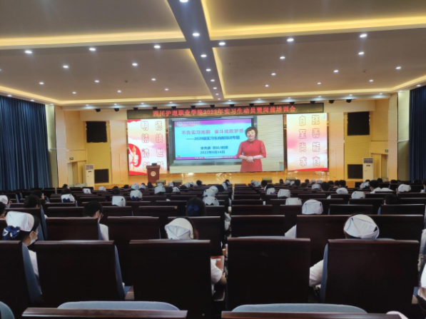张先庚院长以“不负实习光阴,奋斗成就梦想”为题,围绕学习习近平总书记来川视察重要指示精神、四川省第十二次党代会精神、四川卫生健康行业现状与趋势、学院发展概况、如何正确面对实习提升综合能力、实习前中后应该怎样做等方面进行全面、系统的讲解和指导。她指出,同学们要养成“多学习,好学习,广学习,博学习”的好习惯,才能让自己的知识、能力适应行业的发展与时代的变迁,为卫生健康事业做出更大的贡献。最后,张院长以“感恩-大爱-担当-奋斗”四个词八个字与同学们共勉,殷切期盼同学们在今后的实习中心存感恩之心、胸怀报国之责,勇担时代使命,传承川护之爱,用实际行动做“四有”川护人。