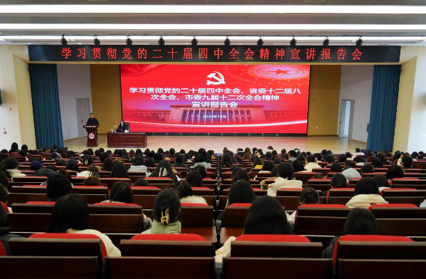 为深入学习贯彻党的二十届四中全会精神,全面落实党中央决策部署,切实把师生的思想和行动统一到党中央决策部署上来,12月25日,学院在德阳校区举办学习贯彻党的二十届四中全会精神宣讲报告会。报告会特邀德阳市委宣讲团成员、德阳市委党校副教授彭柳作专题宣讲,学院党员代表、学生代表共计400余人参加。