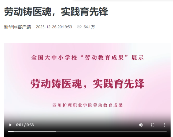 近日,由中宣部宣传舆情研究中心、“学习强国”学习平台及新华网联合发起的全国大中小学校“劳动教育成果”征集展示活动评选结果正式公布。学院《劳动铸医魂 实践育先锋》(CRC人才培养教师团队建设创新案例)劳动教育成果成功入选标杆案例,成为全国医药类院校劳动教育实践的优秀范例。截至发稿,该成果已在“学习强国”学习平台和新华网面向全国展播,播放量已突破64万次,赢得社会广泛关注与好评。